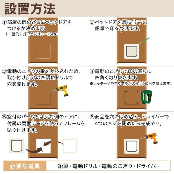 ペットドア 猫用-Aug 03, 18 · 猫ドアに型紙が付属しているのであれば、切り抜くときの失敗を防ぐために型紙よりも5mm程度大きめに印をつけておくと安心。 3:鉛筆などでつけた印に従って、扉をノコギリで切り抜いていく。 4:ドライバーを使用し、猫ドアを取り付けたら完成。ペットドア取り付け事例 ペットドアを取り付けてすぐ通った!パート3 投稿日 19年7月17日 猫ドア動画パート2 今回は、ネコちゃんドアを取り付けさせて頂いたお客様からお寄せ頂いた動画のご紹介です またまたまた!